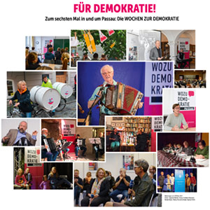 Das Werbematerial der Wochen zur Demokratie wurde mit wenigen Ausnahmen auf 100% Recyclingpapier gedruckt.